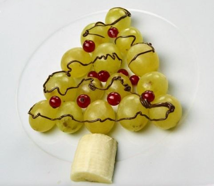 Uvas de Nochevieja formando un árbol de Navidad (con 12 uvas)
