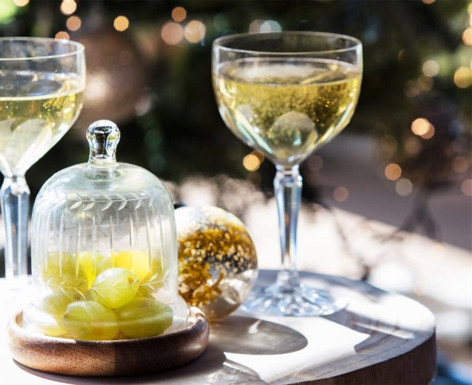 Uvas de Nochevieja cubiertas con una campana de cristal