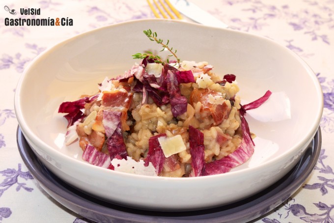 Es evidente que un poco de panceta, bacon o jamón hacen que un plato resulte muy sabroso, pero eso no quiere decir que si no se incorporan estos ingredientes, no se pueda obtener un plato delicioso. Así que vamos con las recetas para el lunes sin carne con achicoria roja, ya sabéis que para ver la elaboración paso a paso sólo tenéis que pulsar en el nombre que aparece sobre la foto. Esperamos que las disfrutéis tanto como nosotros, de hecho, hoy repetimos el risotto, pero en esta ocasión le añadiremos vino blanco (en lugar de vermú) y aceitunas.