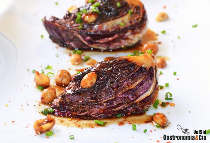 Achicoria con salsa yakiniku y cacahuetes (sin salsa de ostras)