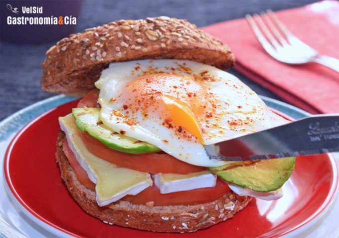 Sándwich de huevo a la plancha con mermelada de tomate y aguacate