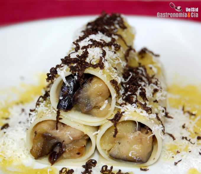 Canelones de berenjena, parmesano y trufa negra