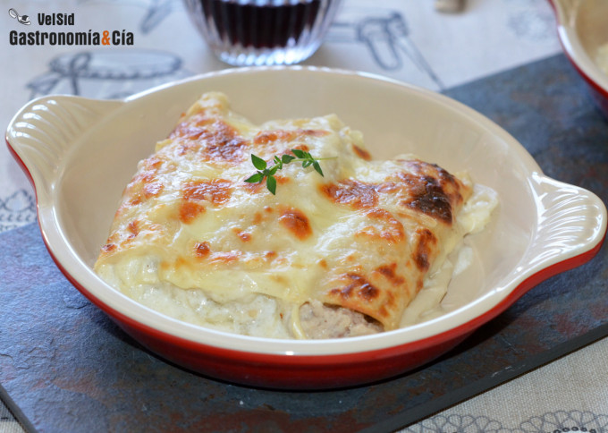 Canelones de carne con salsa maestra