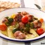 Cazuela de butifarra con ñoquis y espárragos verdes