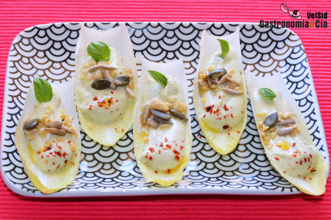 Endibias con tofunesa de albahaca y semillas