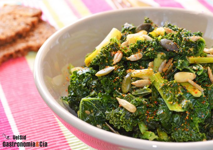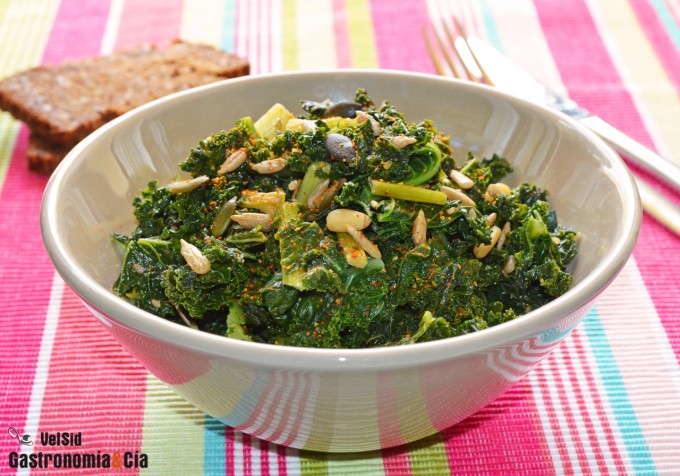 Kale con aceite de coco y semillas