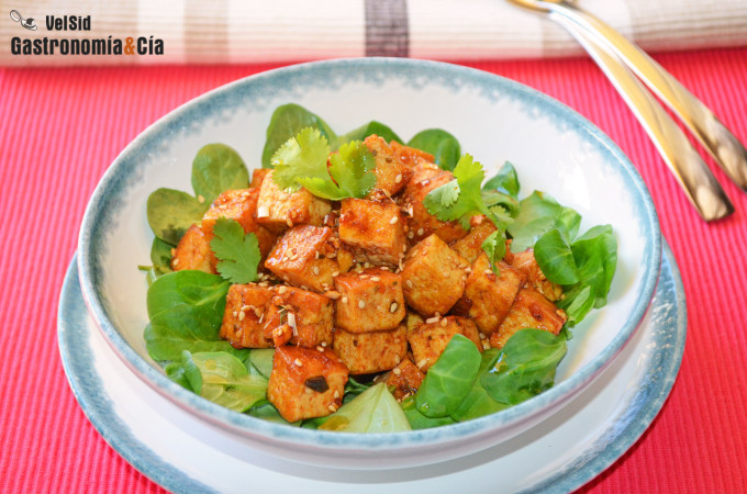 Tofu con sriracha y miel