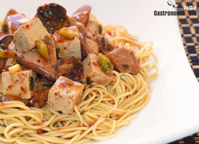 Noodles con tofu y setas