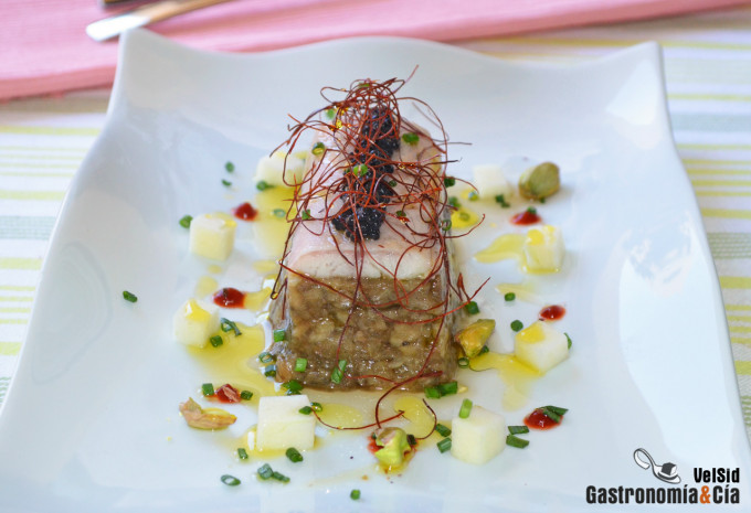 Panna cotta de pimientos asados con tartar de sardina ahumada