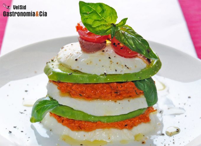 Ensalada de aguacate y mozzarella con pesto de espinacas
