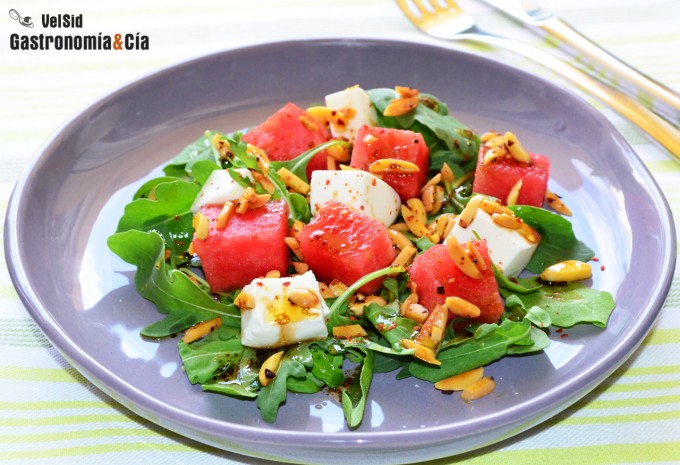Con esto ya sabéis que aunque ya no tengáis sandía en la nevera, las recetas con fruta de temporada que veréis a continuación las podéis adaptar y versionar a vuestro gusto. Se nos ocurre, por ejemplo, que el primer aperitivo, la sandía con yogur de cabra y sriracha, la probéis con naranja, la ensalada ‘caprese’ de sandía, sustituyéndola por persimon, el tartar de atún con manzana verde… Y guardaos muy bien este recetario porque en unos meses volverá el verano y siempre podréis volver a recurrir a estas recetas con sandía para sorprender y disfrutar de platos ricos, nutritivos, saludables y fáciles de hacer. Ya sabéis que bajo estas líneas tenéis la presentación de los platos y que para ver la elaboración paso a paso, simplemente tenéis que pulsar en el nombre que está sobre la foto. ¡Que disfrutéis!