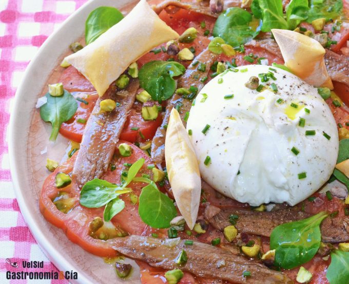 Cogollos con sardinas anchoadas y queso Idiazábal ahumado
