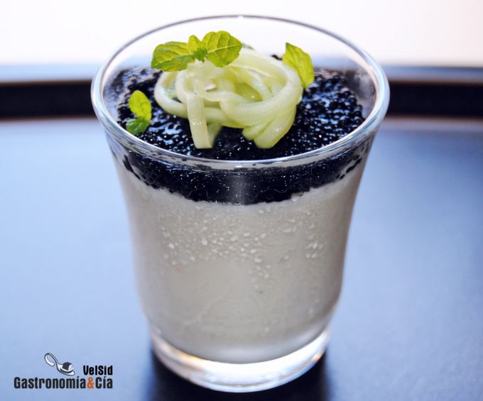 Yogur con huevas de arenque y pepino