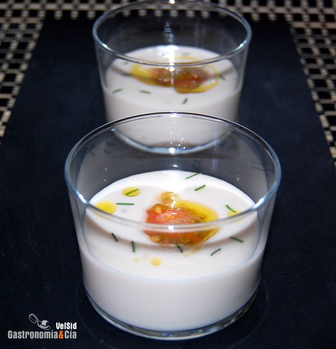 Sopa fría de judías blancas con caviar de tomate