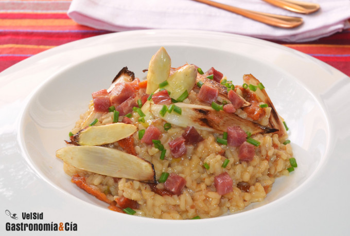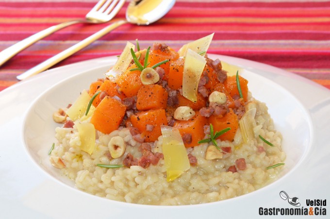 Arroz cremoso con calabaza, jamón y queso ahumado
