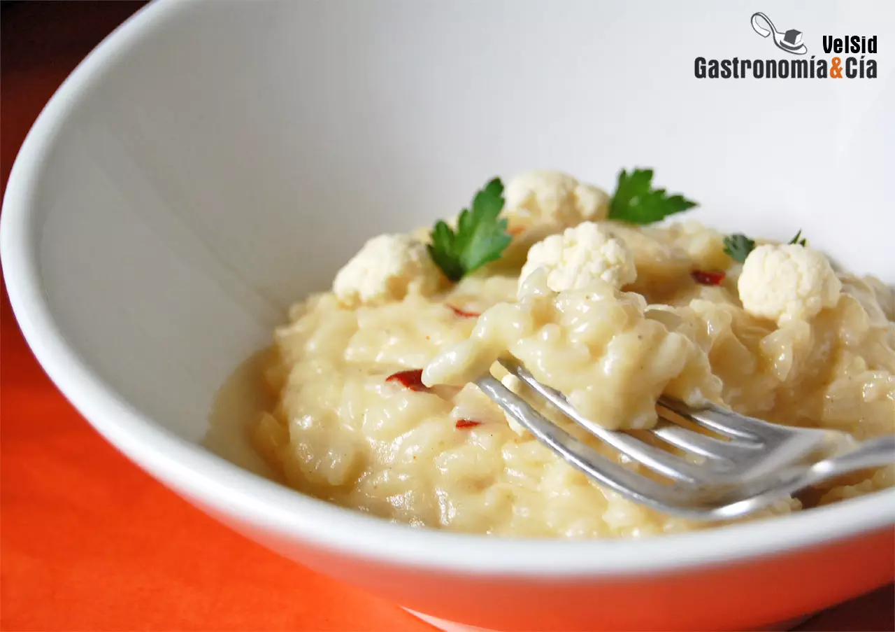 Arroz cremoso con calabaza, jamón y queso ahumado
