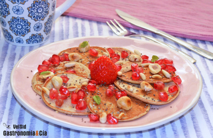 Tortitas de plátano y espelta integral con granada y frutos secos