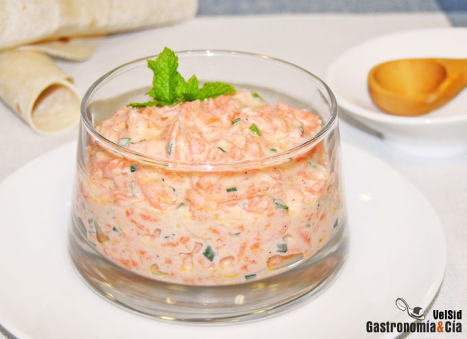Gazpacho con zanahoria, con queso de cabra y albahaca