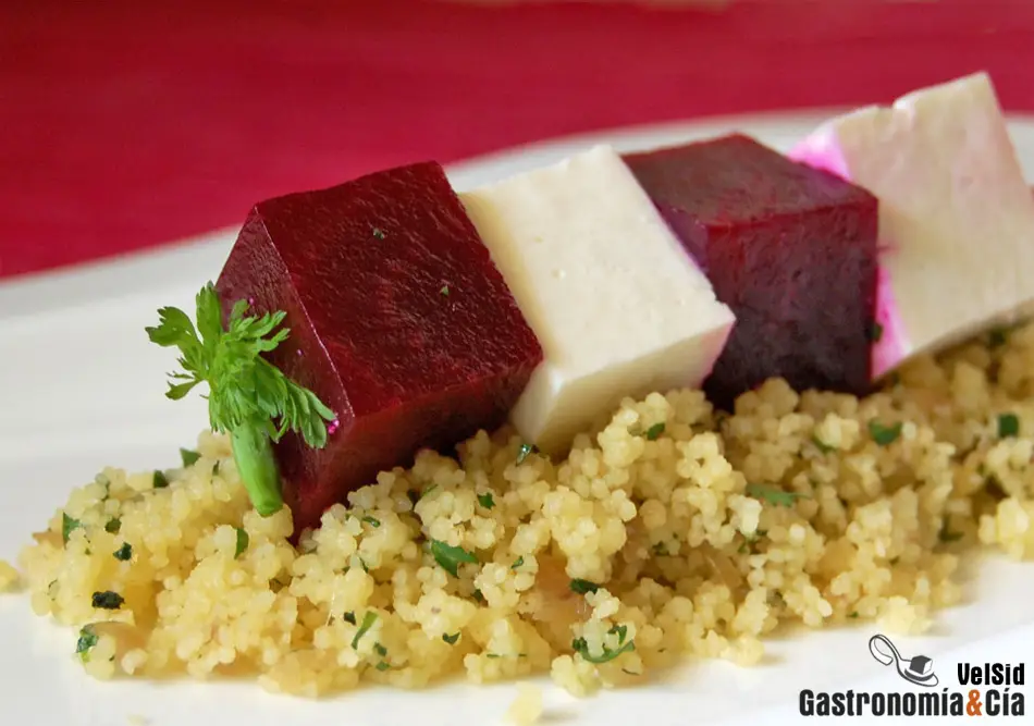 Crema de queso de cabra y pimientos con crumble de anchoa