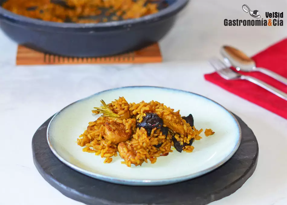 Arroz con seta de cardo y trompeta negra