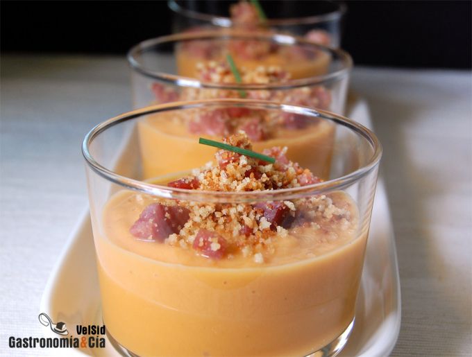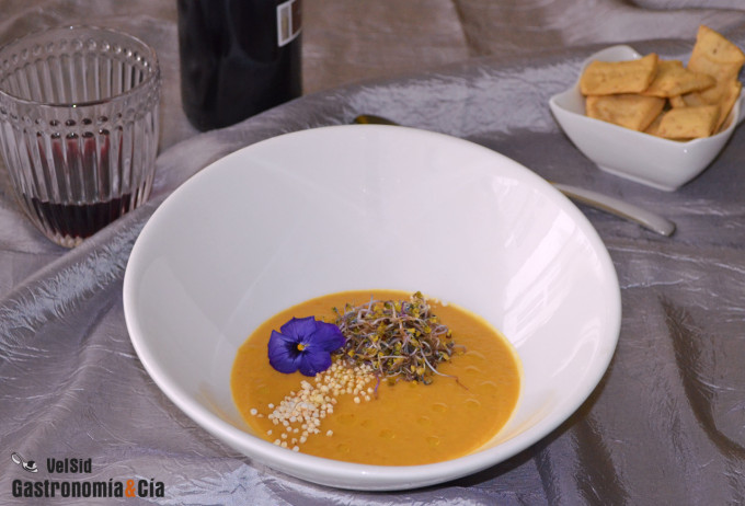 Crema de boniato con confitura de boletus, avellanas y rúcula crujiente
