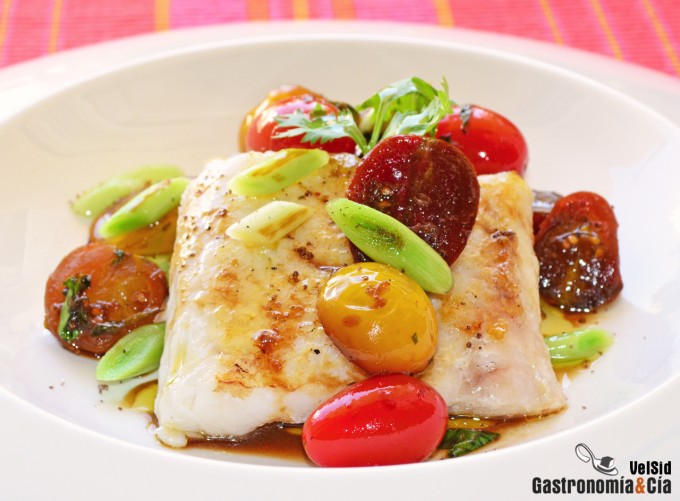 Merluza con tomatitos marinados con soja