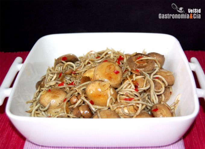 Pasta con pimientos del piquillo confitados al cava y volandeiras