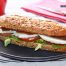 Bocadillo de tomate, aguacate, huevo y pepino agridulce