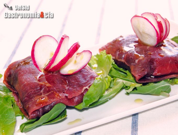 Así que con estas cecinas hacemos muchos aperitivos, comidas, meriendas, cenas… Sólo para que os hagáis una idea de la versatilidad de este producto español (hay otros tipos de cecina en otros países), hemos reunido en este post 18 recetas de pinchos y tapas con cecina, deliciosos y originales bocados que podréis hacer para el aperitivo del finde y siempre que os apetezca. Vais a ver recetas muy fáciles y demasiado buenas, así que no os las podéis perder. Ya sabéis que bajo estas líneas tenéis la presentación y que para ver los ingredientes y la elaboración paso a paso, simplemente tenéis que pulsar en el nombre que está sobre la foto.