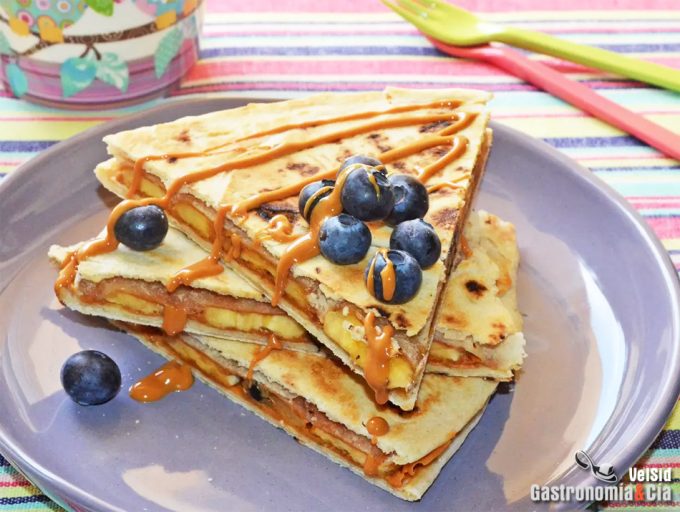 Piadina con plátano, arándanos y crema de cacahuete
