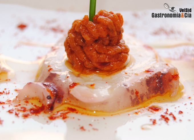 Panna cotta de queso, huevas de lumpo y ensalada de pepino
