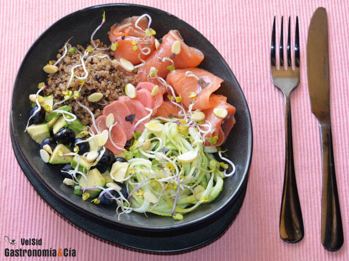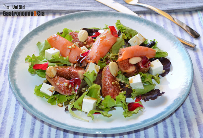 Y para todos los gustos, aunque a quienes os guste el salmón ahumado o marinado, y os gusten las ensaladas en general, os van a conquistar todas estas recetas hasta el punto de no saber por cuál empezar a probar. Pero que eso no sea un problema, empezad por la primera y terminad por la última, salvo si alguna ensalada tiene un ingrediente que no esté de temporada, que la podréis aplazar o sustituir. Es el caso de ciertas frutas, por ejemplo, cuando no sea temporada de higos o brevas, pues se puede hacer la misma receta con pera o manzana, que siempre hay y armonizan de maravilla en las ensaladas y el salmón.