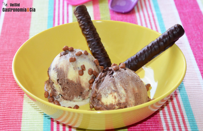 Helado de chocolate con cookies de chocolate y sirope de chocolate
