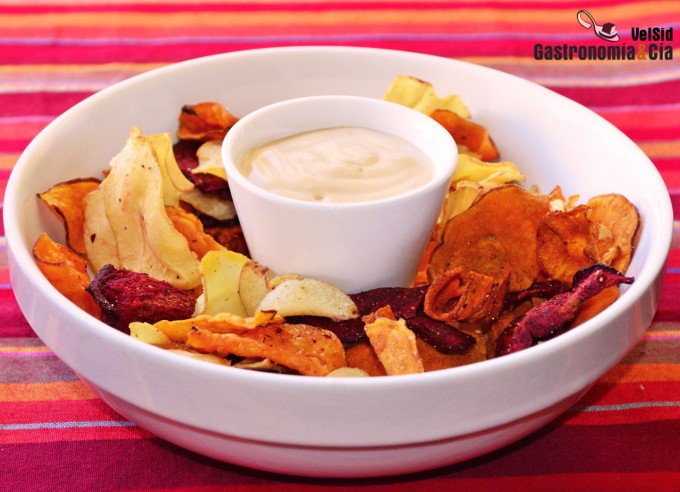 Patatas salteadas con sriracha y falsa mayonesa de ajo y perejil