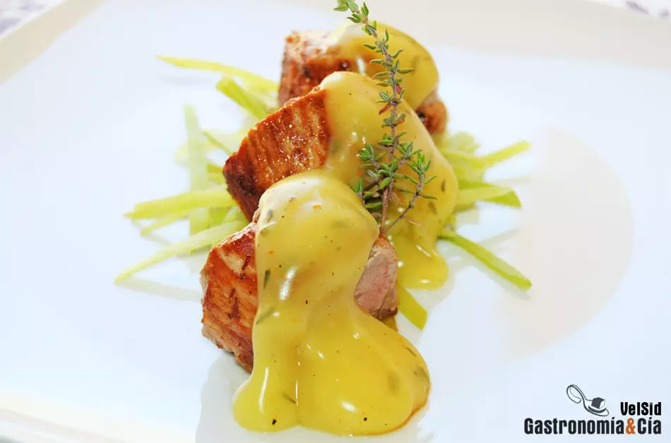 Solomillo de cerdo con velouté de cava