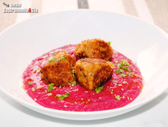 Hamburguesas de merluza con ensalada de alubias de Santa Pau
