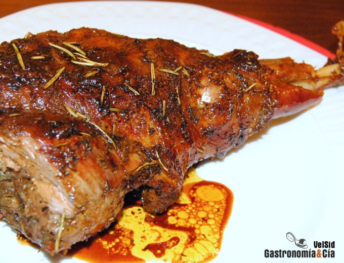 Pierna de cordero lechal al horno con hierbas provenzales y setas shiitake