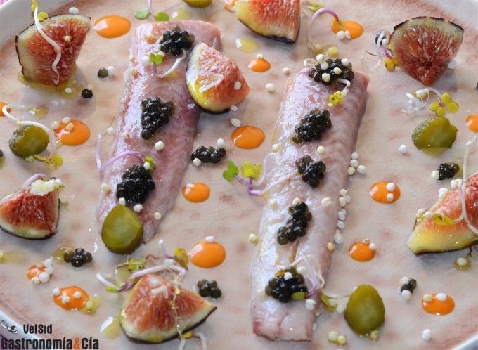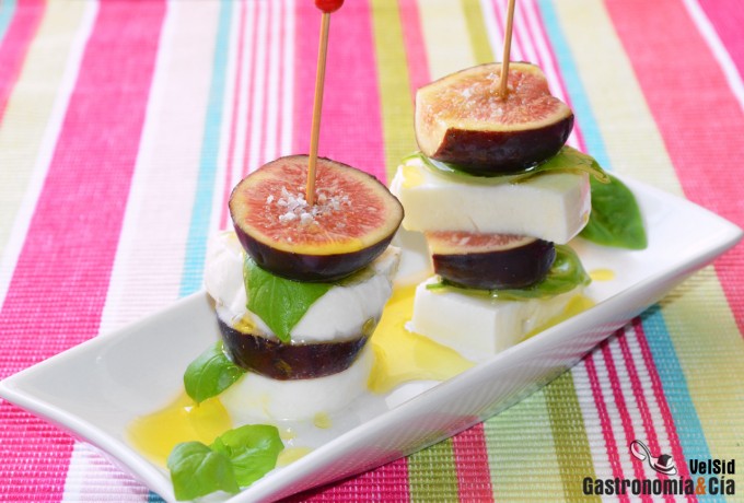 Mozzarella con brevas, tomate seco y tapenade de dátiles