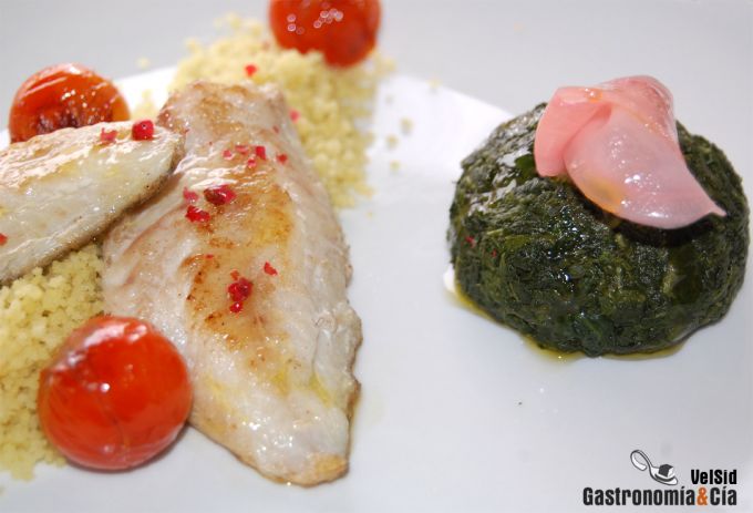 Salmonetes con cuscús de espinacas