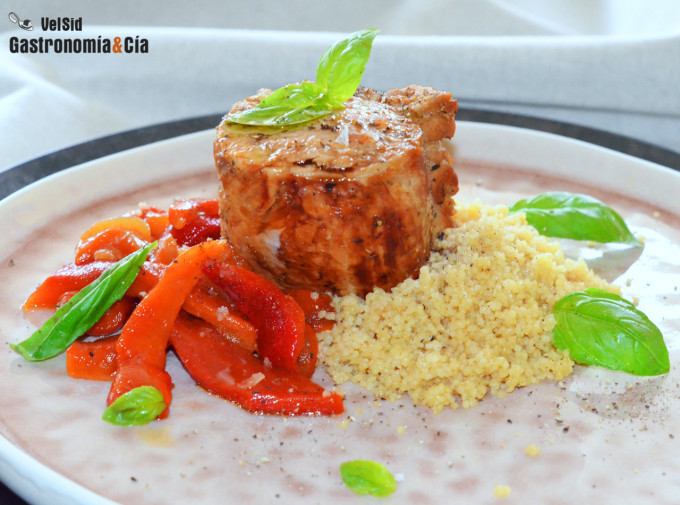 Solomillo de cerdo con cuscús con albahaca y limón