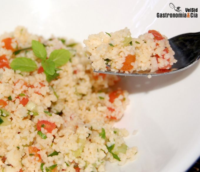 El cuscús que la mayoría tenemos en la cocina es cuscús precocido, esas bolitas de sémola de trigo duro que ni siquiera necesitan cocción, con cinco minutos sumergido en un líquido caliente y con la cantidad adecuada, se obtiene un grano hidratado, esponjoso, jugoso y tan sabroso como desee el cocinero. Si todavía no tenéis muy claro cómo cocinar el cuscús, en primer lugar os recomendamos leer este post en el que podréis conocer un poco más sobre su origen y características.