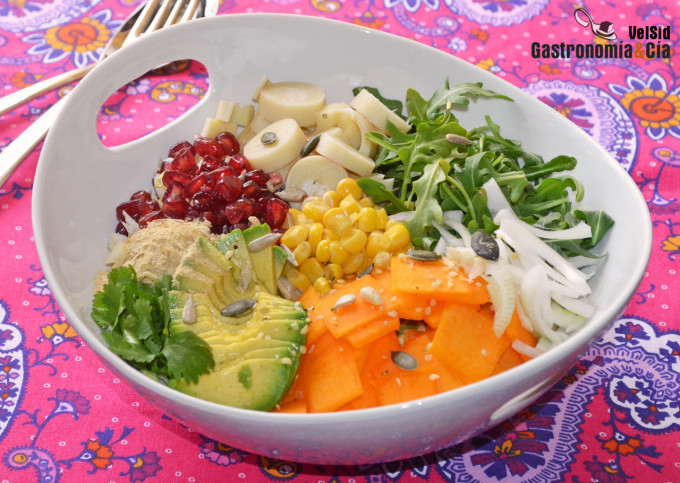 Hay muchas variedades de lechuga y cada una ofrece distintos sabores y texturas a nuestros platos, sin olvidar el juego de colores que también es importante a la hora de que la comida entre por los ojos, y aunque las bolsas de lechugas variadas, mezclum o brotes verdes son muy cómodas de utilizar, os recomendamos que de vez en cuando sigáis comprando las lechugas enteras, comprobaréis que la tersura de sus hojas es insuperable, siempre que estén bien frescas, claro. Y hablamos de lechugas porque es el ingrediente estrella del recetario semanal que dedicamos a la cocina vegetariana (a veces vegana) con la que nos sumamos a la campaña internacional de reducción del consumo de carne (Meatless Monday).