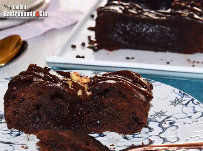 Brownie de chocolate y nueces saludable, bajo en grasas y sin azúcar
