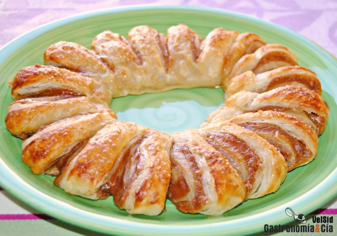 Corona de hojaldre rellena de mantequilla de manzana y cacahuete