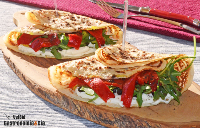 Creps rellenos de mascarpone y pimientos del piquillo