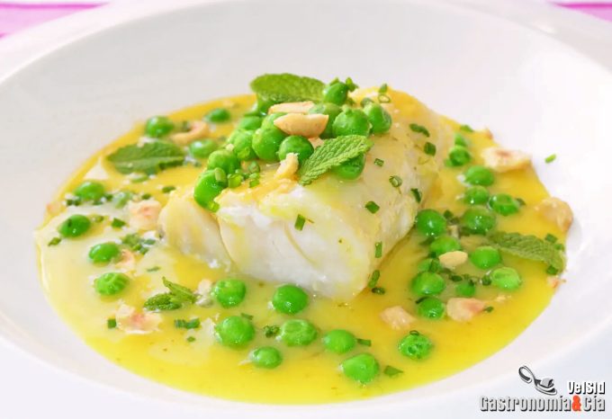 Bacalao con salsa de naranja, cebollino y hierbabuena