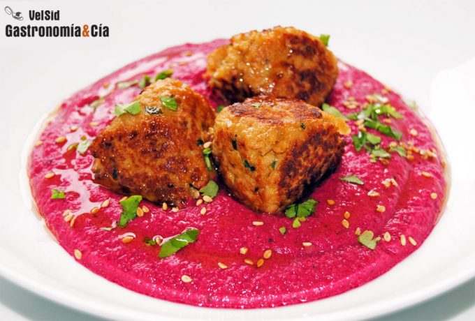 Hummus de remolacha con bocaditos de soja