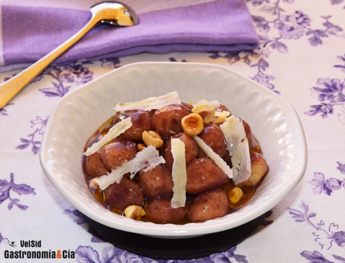 Así que aquí tenéis recetas de ñoquis con setas, tomate, remolacha, calabaza, bimi, alcachofa, aguacate, pimiento, tofu, huevos, queso… Ya sabéis que este alimento tradicional de la gastronomía de Italia se cocina en muy pocos minutos, por eso nos parece un excelente recurso para cocinar cuando vamos cortos de tiempo y queremos comer rico y sano. Esperamos que os gusten nuestras recetas vegetarianas con ñoquis, ya sabéis que bajo estas líneas tenéis la presentación de los platos, y para ver los ingredientes y la elaboración paso a paso, simplemente tenéis que pulsar en el nombre que está sobre la foto. ¡A disfrutar!