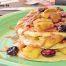 Tortitas de avena, plátano y yogur con arándanos salteados