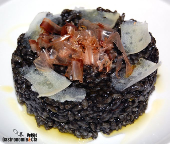Lasaña de arroz socarrat con shiitake y trufa negra